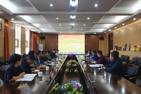 按照《內(nèi)蒙古大學(xué)交通職業(yè)技術(shù)學(xué)院黨委開展“不忘初心、牢記使命”主題教育工作方案》要求,2019年10月10日下午,學(xué)院黨委書記孫智憑在交通樓A439會(huì)議室主持召開了“不忘初心、牢記使命”專題調(diào)研座談會(huì)。自治區(qū)黨委主題教育第八巡回指導(dǎo)組成員、內(nèi)蒙古水利水電設(shè)計(jì)院組織人事處干部王宇出席座談會(huì),學(xué)院黨政辦公室、黨委組織部、黨委宣傳部、人事與后勤保衛(wèi)處負(fù)責(zé)人,各黨總支、直屬黨支部書記參加座談。