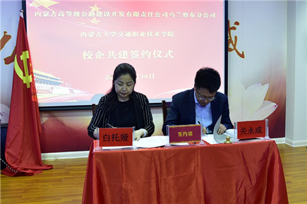 2019年5月30日上午,內(nèi)蒙古大學(xué)交通學(xué)院與內(nèi)蒙古高路公司烏蘭察布分公司校企合作簽約儀式在企業(yè)培訓(xùn)中心會(huì)議室舉行。內(nèi)蒙古高路公司烏蘭察布分公司總經(jīng)理關(guān)永成、黨委辦公室主任郝宗濤,學(xué)院黨委副書(shū)記、紀(jì)委書(shū)記白托婭和學(xué)院相關(guān)部門(mén)負(fù)責(zé)人出席簽約儀式。