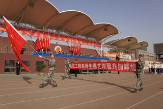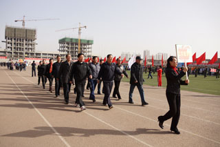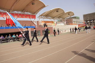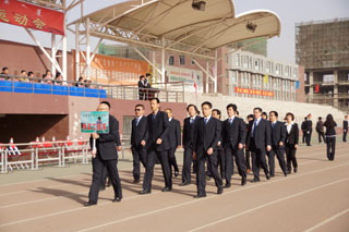 上午8時,伴隨著運(yùn)動員進(jìn)行曲明快激揚(yáng)的節(jié)奏,儀仗隊(duì)、裁判員代表隊(duì)、各班級運(yùn)動員、教師方隊(duì)依次入場。
