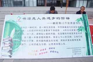 本次活動將持續(xù)一周,主要內(nèi)容有:現(xiàn)場師生在宣傳橫幅上簽名;參加“淘書會友”活動的同學進行圖書交換;師生選出需要的書籍交由圖書館訂購;從師生中選拔“讀書標兵”相互交流讀書體會;“作家+作品=獎品”活動;“拍出你心中最能體現(xiàn)讀書氛圍的場景”攝影展等活動。