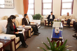 王今一行在交通樓A439會議室與學(xué)院黨委副書記、紀(jì)委書記白托婭及相關(guān)部門負(fù)責(zé)人、部分學(xué)生代表等進(jìn)行了友好交流和座談。