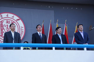 學(xué)院領(lǐng)導(dǎo)與學(xué)生方隊(duì)、觀眾和志愿者合影 | |