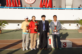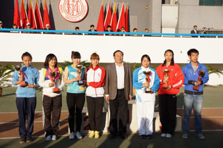與會(huì)領(lǐng)導(dǎo)為獲學(xué)生女子團(tuán)體單位頒獎(jiǎng) |