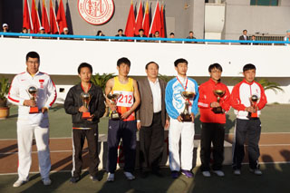 與會(huì)領(lǐng)導(dǎo)為獲學(xué)生男子團(tuán)體單位頒獎(jiǎng) |