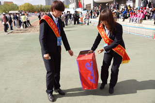 學(xué)院黨委副書(shū)記、紀(jì)委書(shū)記白托婭(左)在運(yùn)動(dòng)會(huì)場(chǎng) |