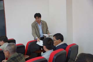 考察組組長、學(xué)校黨委組織部部長張士偉主持會(huì)議 |