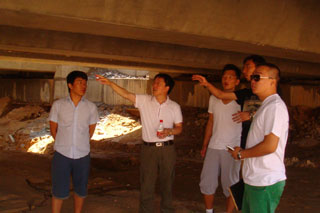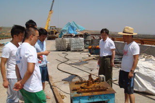 經(jīng)學(xué)院安排08級土木工程專業(yè)留學(xué)生分別在橋梁工程系主任王智遠副教授、公路工程試驗檢測中心主任趙衛(wèi)平教授、道路工程系滿都拉副教授、橋梁工程系劉潤星副教授、張?zhí)煊罾蠋煹膸ьI(lǐng)下于2012年7月5日前往大路新區(qū)至薛家灣快速通道建設(shè)現(xiàn)場進行參觀實習(xí)。
