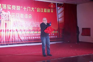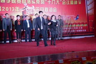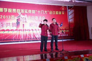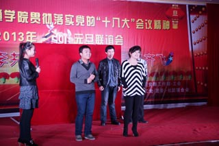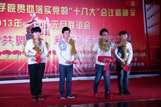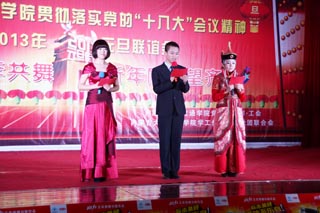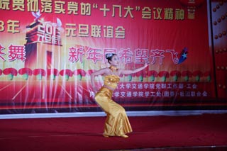 黨委副書記、紀(jì)委書記白托婭致新年賀詞。白書記代表全院領(lǐng)導(dǎo)班子向辛勤的貢獻(xiàn)在教學(xué)、科研、管理和服務(wù)一線的全體教職員工及全院朝氣蓬勃的青春學(xué)子們致以新年的問候和祝福。她說道,2012年是非比尋常的一年,我們的黨勝利召開了十八次代表大會(huì),選舉產(chǎn)生了新一屆中央領(lǐng)導(dǎo)集體。我們院也在全院師生的齊心協(xié)力下,我們的檢測中心終于喜獲了交通部甲級資質(zhì)。最后還向?yàn)榱诉@臺晚會(huì)付出所有智慧和辛勞的老師和同學(xué)們致以感謝!