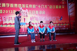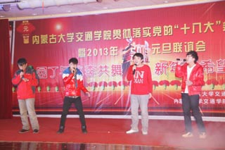 2012年12月26日晚7:00,交通學(xué)院元旦晚會(huì)“園丁與桃李共舞,新年同夢想齊飛”在交通樓多功能廳A453隆重舉行。