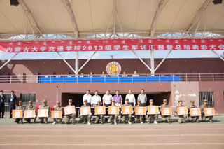2013年9月5日,為期12天的內(nèi)蒙古大學(xué)交通學(xué)院2013級(jí)新生軍訓(xùn)圓滿(mǎn)結(jié)束并在南校區(qū)操場(chǎng)舉辦新生軍訓(xùn)匯操暨表彰大會(huì)。中國(guó)人民解放軍駐內(nèi)蒙古大學(xué)后備軍官選培辦主任胡成,內(nèi)蒙古大學(xué)學(xué)工處副處長(zhǎng)(團(tuán)委副書(shū)記)武裝部副部長(zhǎng)海光,學(xué)院常務(wù)副院長(zhǎng)董平,黨委副書(shū)記、紀(jì)委書(shū)記、軍訓(xùn)工作領(lǐng)導(dǎo)小組組長(zhǎng)白托婭,副院長(zhǎng)孫恒,副院長(zhǎng)武鈞和各系黨總支書(shū)記出席表彰大會(huì)并在主席臺(tái)就坐。學(xué)工處副處長(zhǎng)、團(tuán)委副書(shū)記高飛主持大會(huì)。