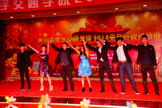 2013年12月19日晚七點,交通學(xué)院學(xué)工處(團委)、社團聯(lián)合會聯(lián)合舉辦“馬蹄踏奏輝煌樂章,春燕憑唱國棟起航”元旦暨歡送畢業(yè)生晚會在多功能廳A453舉行。交通學(xué)院常務(wù)副院長董平,黨委副書記、紀(jì)委書記白托婭,黨委委員、教務(wù)處處長趙志蒙教授,黨群工作部副部長、工會主席李春燕,汽車工程系黨總支副書記鐘懷軍,工程管理系黨總支副書記賈春雷,學(xué)院各部門負(fù)責(zé)人,學(xué)工辦主任,學(xué)工處(團委)全體老師出席晚會;去哪兒網(wǎng)贊助商,大學(xué)生第一線的嘉賓和五百多名觀眾觀看晚會。