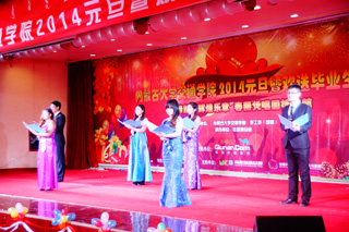 白托婭副書記致辭,她說,回首即將過去的2013年,學(xué)院各項建設(shè)事業(yè)取得了長足的發(fā)展,特別令人鼓舞和振奮的是,我們集全院之力勝利召開了學(xué)院第一次黨員大會,確立了今后一個時期學(xué)院的發(fā)展目標(biāo)和發(fā)展思路。無論是過去的成績還是未來的目標(biāo),都離不開全體教職員工和廣大同學(xué)們的努力,學(xué)院所有的成績都凝聚著大家的智慧和汗水。喜迎新年之際,她代表學(xué)院領(lǐng)導(dǎo)班子,向全院師生員工致以衷心的感謝和誠摯的問候,祝愿大家在新的一年里,學(xué)習(xí)進步、工作順利、闔家幸福、萬事如意。同時,她還為即將畢業(yè)的2014屆學(xué)子們送上深情的祝福,希望同學(xué)們在未來的人生旅途中,秉承著交通學(xué)院50多年形成的優(yōu)良傳統(tǒng),志存四方,腳踏實地,自信拼搏,勤奮進取,開創(chuàng)出美好燦爛的明天。