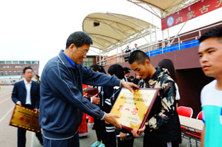 4月18日下午,我院第45屆田徑運動會經(jīng)過兩天比賽,在南校區(qū)體育場勝利閉幕。 學院黨委書記孫智憑出席閉幕式并為獲獎單位頒獎 學院常務(wù)副院長董平 會場 黨政辦主任胡利春 本屆運動會總裁判長李波 黨群工作部副部長、工會主席李春燕 學工處副處長、團委副書記高飛 與會領(lǐng)導為獲獎單位頒獎 與會領(lǐng)導為獲獎單位頒獎 與會領(lǐng)導為獲獎單位頒獎 學院國旗班