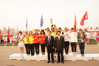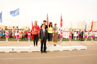 與會領(lǐng)導(dǎo)為獲得學(xué)生女子團(tuán)體前六名的單位頒獎 |
