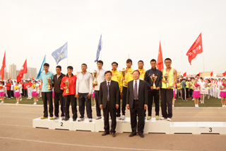 與會領(lǐng)導(dǎo)為獲得學(xué)生男子團(tuán)體前六名的單位頒獎 |