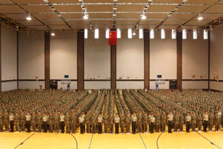 2014年9月1日上午,內(nèi)蒙古大學(xué)2014年新生軍訓(xùn)動員大會在學(xué)校南北校區(qū)文體館同時隆重舉行。