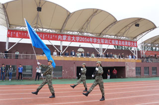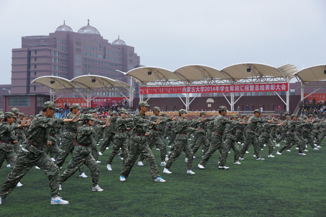9月12日上午8:00,內(nèi)蒙古大學(xué)2014年學(xué)生軍訓(xùn)匯報(bào)暨總結(jié)表彰大會(huì)伴隨著整齊劃一的步伐、振奮人心的軍歌,在北校區(qū)和南校區(qū)同時(shí)舉行。