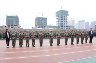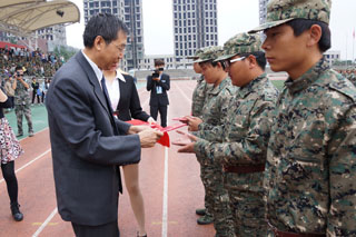 在此起彼伏的“同學(xué)們好”、“首長(zhǎng)好”、“同學(xué)們辛苦了”、“為學(xué)校增光”的口號(hào)中,我校黨委書記朱炳文、校長(zhǎng)陳國(guó)慶檢閱了學(xué)生各團(tuán)軍訓(xùn)方隊(duì),同學(xué)們以標(biāo)準(zhǔn)的軍姿、飽滿的熱情迎接了領(lǐng)導(dǎo)的檢閱。