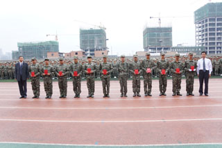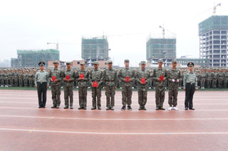 我院六個(gè)連隊(duì)(14連、15連、19連、21連、23連、24連)獲得優(yōu)秀連隊(duì)稱號(hào);五個(gè)連隊(duì)(15、16、18、19、22連)獲得內(nèi)務(wù)衛(wèi)生優(yōu)秀連隊(duì)稱號(hào);學(xué)工處學(xué)生管理科科長(zhǎng)崔建軍獲得優(yōu)秀學(xué)院指導(dǎo)員稱號(hào);八名教官?gòu)埼牟?、賀鵬程、王冠斌、王浩天、王劍飛、侯宇杰、楊凱、周廣華獲得優(yōu)秀連長(zhǎng)稱號(hào);八名教師苗冬梅、白宇杰、任建偉、張永亮、周雪瓊、劉婷、趙廷斌、董小紅獲得優(yōu)秀連隊(duì)指導(dǎo)員稱號(hào);三十二名新生獲得軍事技能訓(xùn)練優(yōu)秀標(biāo)兵稱號(hào)。