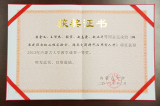 我院以柴金義院長牽頭,王智遠副教授、張宏副教授、趙志蒙教授與趙衛(wèi)平教授為主要參加人的《瞄準建設部級工程實驗室,培養(yǎng)交通特色應用型人才》教學成果榮獲學校授予的校級教學成果獎一等獎。并在2014年9月11號內蒙古大學召開2014年本科教學工作會議上頒發(fā)了獲獎證書。