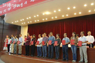 內蒙古大學2013年校級教學成果一等獎的獲獎代表上臺領獎 |