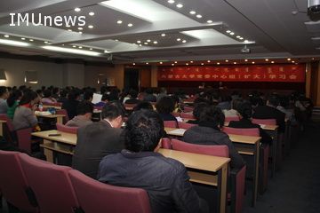 為貫徹落實(shí)中央民族工作會(huì)議精神及自治區(qū)民族工作部署要求,使我校廣大領(lǐng)導(dǎo)干部更好地了解民族工作的重大意義,增強(qiáng)貫徹落實(shí)的思想自覺(jué),2014年10月21日下午,在學(xué)術(shù)會(huì)議中心8號(hào)會(huì)議室,學(xué)校黨委召開(kāi)中心組(擴(kuò)大)學(xué)習(xí)會(huì)議,邀請(qǐng)我校公共管理學(xué)院政治理論教研部副教授趙麗華作關(guān)于學(xué)習(xí)中央民族工作會(huì)議精神的專題輔導(dǎo)講座。