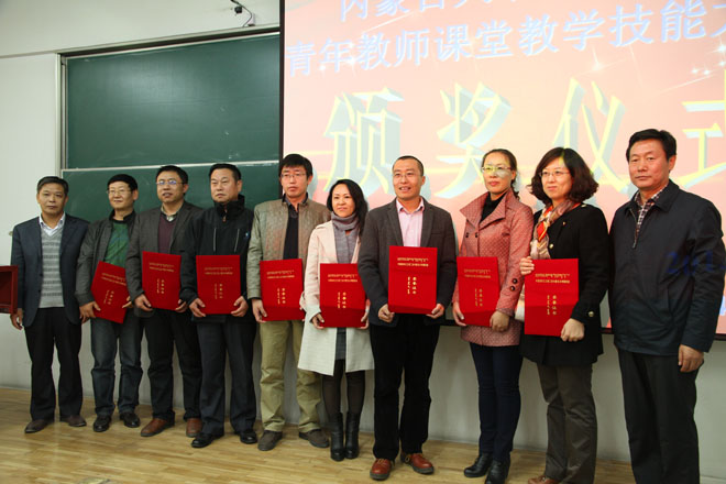 學(xué)校副校長張吉維(左一) 、紀委書記李秀良( 右一 )為獲獎單位及個人頒獎,我院工會主席李春燕(右三)領(lǐng)獎 | |