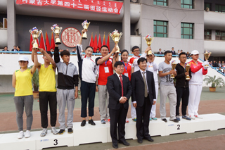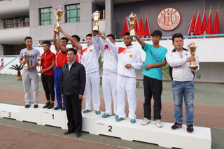 與會領導為獲得學生男子團體前六名的單位頒獎 |