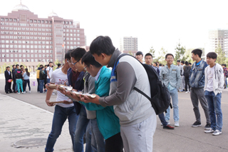 開(kāi)幕式結(jié)束后參會(huì)人員和學(xué)生舉行了條幅簽名儀式,各系學(xué)生組隊(duì)參加了心理趣味活動(dòng)。
