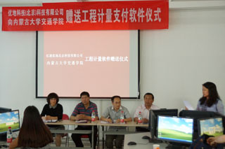 6月3日下午,經(jīng)過一段時間的洽談和籌備,億通優(yōu)地北京科技有限公司和內(nèi)蒙古大學交通學院達成校企合作協(xié)議,億通優(yōu)地北京科技有限公司向我院師生贈送優(yōu)地的正版軟件(內(nèi)蒙古大學交通學院學生每人一個正式賬戶)。贈送儀式在工程管理系工程造價實驗室舉行。
