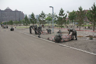 為實現(xiàn)“平時服務(wù),急時應(yīng)急,戰(zhàn)時應(yīng)戰(zhàn)”的目標(biāo),提高我院預(yù)備役通信營、連部預(yù)備役人員的戰(zhàn)備素質(zhì)。內(nèi)蒙古陸軍預(yù)備役步兵第三十師有針對性地對我院預(yù)備役通信營、連部預(yù)備役人員進(jìn)行了警棍盾牌操、軍體拳、無線電電臺開設(shè)與溝通、電話站開設(shè)與溝通、被覆線收放技術(shù)、電話站轉(zhuǎn)接基本功、帳篷的搭建、警戒與防衛(wèi)及軍事理論等專業(yè)訓(xùn)練及政治理論學(xué)習(xí)。