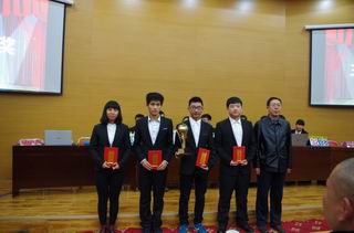 圖為蘇赫科長、蘭波副科長為汽車工程系代表隊(duì)頒獎(jiǎng) |