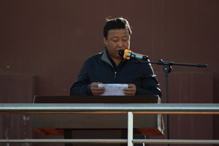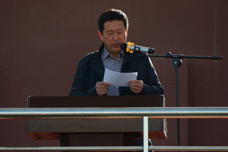 莊嚴(yán)的升國(guó)旗儀式后,學(xué)院黨委副書記、紀(jì)委書記白托婭致開幕詞。她代表學(xué)院黨政領(lǐng)導(dǎo)對(duì)本次運(yùn)動(dòng)會(huì)的順利召開表示熱烈的祝賀!對(duì)前來(lái)參加學(xué)院運(yùn)動(dòng)會(huì)開幕式的學(xué)校領(lǐng)導(dǎo)、來(lái)賓、老師和同學(xué)們表示熱烈的歡迎!向參加本次運(yùn)動(dòng)會(huì)的運(yùn)動(dòng)員、裁判員和工作人員致以誠(chéng)摯的問(wèn)候!她說(shuō),一年一度的田徑運(yùn)動(dòng)會(huì)已經(jīng)成為校園生活的重要組成部分,是對(duì)全院師生員工運(yùn)動(dòng)水平的一次檢閱,是對(duì)學(xué)院群眾性體育工作成果的一次檢驗(yàn),也是對(duì)廣大師生員工競(jìng)爭(zhēng)意識(shí)、團(tuán)隊(duì)精神、頑強(qiáng)意志的一次考驗(yàn),更是全院師生員工精神風(fēng)貌的一次全面展示。在十八屆三中全會(huì)上中央提出,學(xué)校要強(qiáng)化體育課和課外鍛煉,努力促進(jìn)青少年身體健康,強(qiáng)健體魄。同學(xué)們的體質(zhì)與健康事關(guān)國(guó)家和民族的未來(lái),廣大青年學(xué)生應(yīng)該積極響應(yīng)團(tuán)中央的號(hào)召,走下網(wǎng)絡(luò)、走出宿舍、走向操場(chǎng),做強(qiáng)健體魄,健康生活的倡導(dǎo)者。學(xué)院將以此次運(yùn)動(dòng)會(huì)為契機(jī),繼續(xù)廣泛開展“陽(yáng)光體育”,不斷加強(qiáng)校園體育文化建設(shè),營(yíng)造人人關(guān)心、人人參與體育活動(dòng)的氛圍,以健康的體魄和飽滿的熱情投入到學(xué)院各項(xiàng)事業(yè)的建設(shè)中來(lái)。相信全體運(yùn)動(dòng)員一定會(huì)本著“重在參與”的奧林匹克精神,在本屆運(yùn)動(dòng)會(huì)上賽出風(fēng)格、賽出水平、賽出成績(jī),爭(zhēng)取體育競(jìng)賽和精神文明的雙豐收。最后,預(yù)祝本屆運(yùn)動(dòng)會(huì)圓滿成功!  |  | 學(xué)院黨委副書記、紀(jì)委書記白托婭致開幕詞 | 鮮花方隊(duì) |