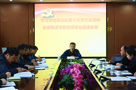 12月9日上午,學(xué)院黨委組織黨委委員、各黨總支(直屬支部)書(shū)記、機(jī)關(guān)黨總支全體黨員,傳達(dá)學(xué)習(xí)自治區(qū)第十次黨代會(huì)精神。