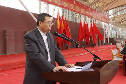 黨委副書記、紀(jì)委書記白托婭代表學(xué)院黨政領(lǐng)導(dǎo)致開幕詞。她說(shuō),一年一度的田徑運(yùn)動(dòng)會(huì)是學(xué)院貫徹“立德樹人”教育思想,全面落實(shí)素質(zhì)教育,響應(yīng)團(tuán)中央“走下網(wǎng)絡(luò)、走出宿舍、走向操場(chǎng)”倡議的重要載體,是對(duì)全院群眾性體育工作成果和師生員工運(yùn)動(dòng)水平的一次檢閱,也是對(duì)廣大師生員工競(jìng)爭(zhēng)意識(shí)、團(tuán)隊(duì)精神、頑強(qiáng)意志的一次考驗(yàn),更是全院師生員工精神風(fēng)貌的一次全面展示,已經(jīng)成為校園生活的重要組成部分。高等學(xué)校作為國(guó)家高層次人才培養(yǎng)的重要基地,同學(xué)們的體質(zhì)與健康事關(guān)國(guó)家和民族的未來(lái)。她號(hào)召大家,要以此次運(yùn)動(dòng)會(huì)為契機(jī),繼續(xù)廣泛開展“陽(yáng)光體育”,積極倡導(dǎo)“三走”,多種方式加強(qiáng)校園體育文化建設(shè),積極營(yíng)造人人關(guān)心、人人參與體育活動(dòng)的氛圍,我們堅(jiān)信,在學(xué)校黨委和學(xué)院黨委的堅(jiān)強(qiáng)領(lǐng)導(dǎo)下,我院全體師生員工將以更加健康的體魄,更加昂揚(yáng)的姿態(tài),更加飽滿的熱情投入到學(xué)院各項(xiàng)事業(yè)的建設(shè)中來(lái)!