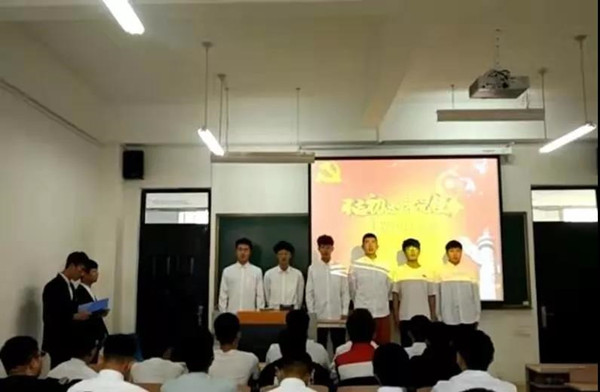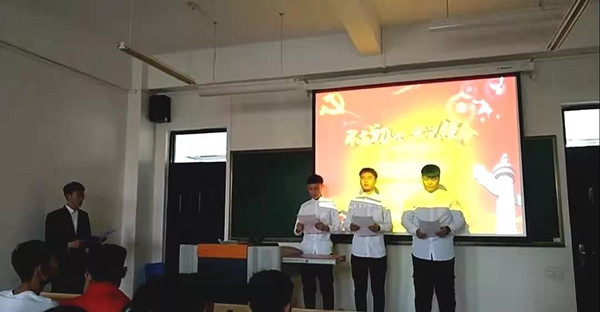 朗誦《不忘初心,牢記使命》、《不忘初心,跟黨走》、《我愛我的祖國》及合唱《團結(jié)就是力量》、《強軍戰(zhàn)歌》、《我和我的祖國》,贏得了師生的陣陣掌聲。無不傳導著中國共產(chǎn)黨人那永不褪色的精神和那不畏艱險、不懼困難、還有那銳意勃發(fā)的氣質(zhì)。團日活動讓全體同學倍感振奮,活動臨近尾聲大家齊聲高呼:“不忘初心、牢記使命,團結(jié)一致、砥礪前行!筑機1924班,加油!”響亮的口號響徹整個教室、整個樓道,激勵著在場每一個人。