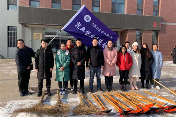 今冬呼和浩特的初雪在上周末如約而至,校園內(nèi)銀裝素裹,分外妖嬈,白雪覆蓋了整個(gè)校園,為校園平添了新的色彩,但同時(shí)校園道路積雪也給師生出行帶來(lái)了安全隱患。為盡快消除積雪影響,方便師生出行,方便師生出行,12月2日上午,學(xué)院團(tuán)委、就業(yè)指導(dǎo)中心組織學(xué)生會(huì)、就業(yè)創(chuàng)業(yè)促進(jìn)會(huì)、國(guó)旗班、軍樂(lè)團(tuán)、心理健康教育中心等部分學(xué)生干部和卓越工程師班的同學(xué)們開(kāi)展義務(wù)掃雪活動(dòng)。