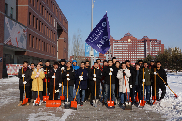 師生黨員、學(xué)生干部、入黨積極分子、卓越工程師班學(xué)生們不畏嚴(yán)寒,爭(zhēng)先恐后,拿起鐵锨、掃帚等工具,齊心協(xié)力,配合默契,迅速投入到掃雪工作中,成為冬日校園一道亮麗的風(fēng)景線。經(jīng)過(guò)1個(gè)多小時(shí)奮力勞動(dòng),交通樓前的積雪基本被清理干凈。