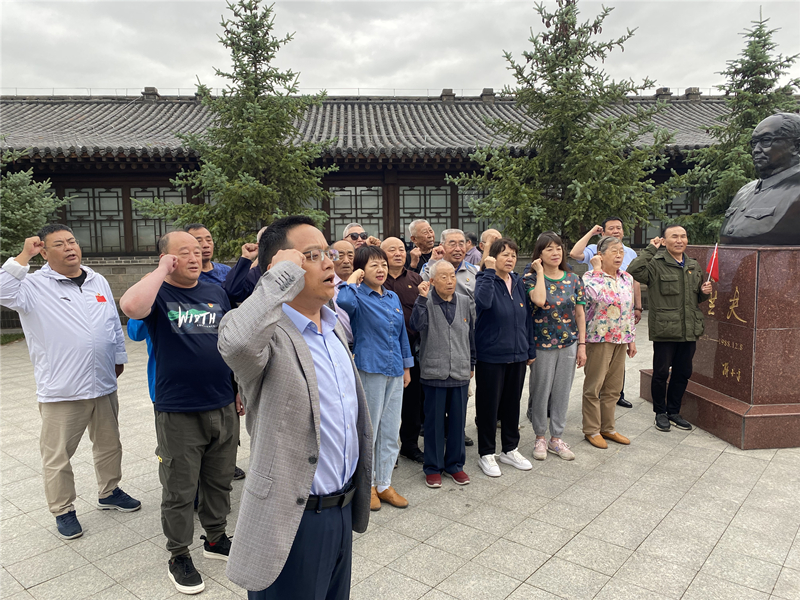 首先,全體黨員佩戴黨徽走近革命先輩烏蘭夫雕像,帶著無限敬仰和崇高敬意,向烏蘭夫同志雕像三鞠躬致敬。接著,面對黨旗,全體黨員再一次莊嚴(yán)宣誓,重溫了入黨時的決心和信念,進一步激發(fā)了傳承紅色基因、賡續(xù)紅色血脈的責(zé)任感和使命感。